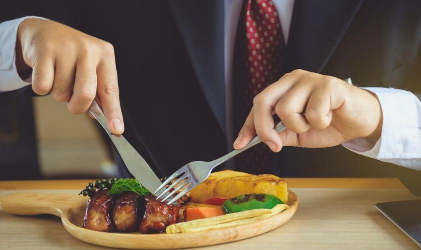 第一,他们吃得慢,咀嚼充分。德国人从不边走边吃,也极少狼吞虎咽。即使赶时间,也会坐下来用餐。一顿早餐,他们平均吃20分钟以上。